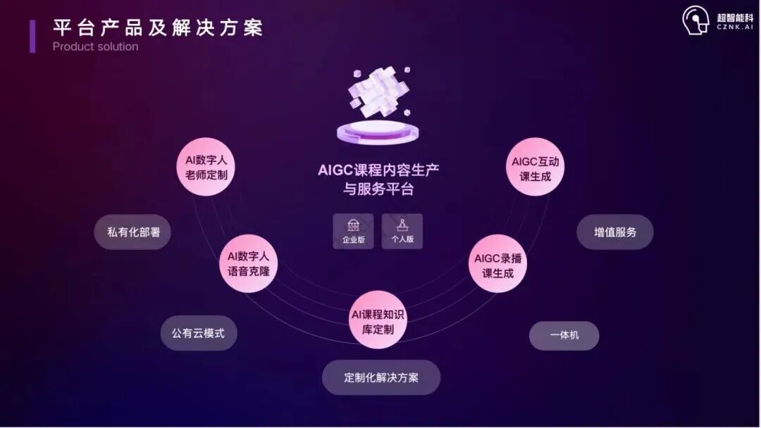 以AIGC课程生产与服务为主,专注于为企业培训、政府培训、中小学、高校、教育机构、出版社以及IP知识博主提供一站式AIGC课程生产平台解决方案