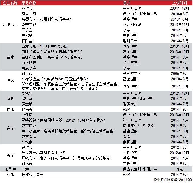 此外,投中研究院通过对互联网金融产业的长期观察发现,从投资方向来看,以下几个概念在近期的投资活动中较为多见:一是贷款功能类,包括P2P、网络小贷等,这一类主要是利用互联网来打破原有的金融信息不对称及垄断,利用大数据降低交易成本或提高交易效率,以及利用电商数据进行量化放贷或者金融服务;另一类是理财功能类,包括记账应用、类宝宝理财、社交选股、搜索引擎等,这一类的核心是利用金融服务新模式、新产品来覆盖传统金融无法覆盖的市场。