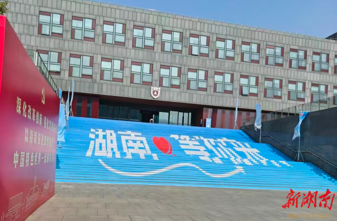 湖南日报11月1日讯 11月1日早上八点半,薄雾如轻纱般笼罩着南京大学仙林校区,初冬的微风带着些许凉意。而学校国际会议中心的台阶上,“湖南等你来”的巨幅标识已燃起一片橙红。