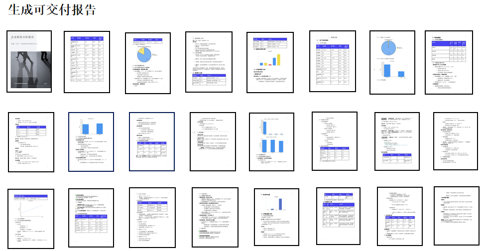 例如■财务风险分析报告:企业只需上传财务报表文件,工作流便可自动整理生成超过30页的财务风险分析报告;