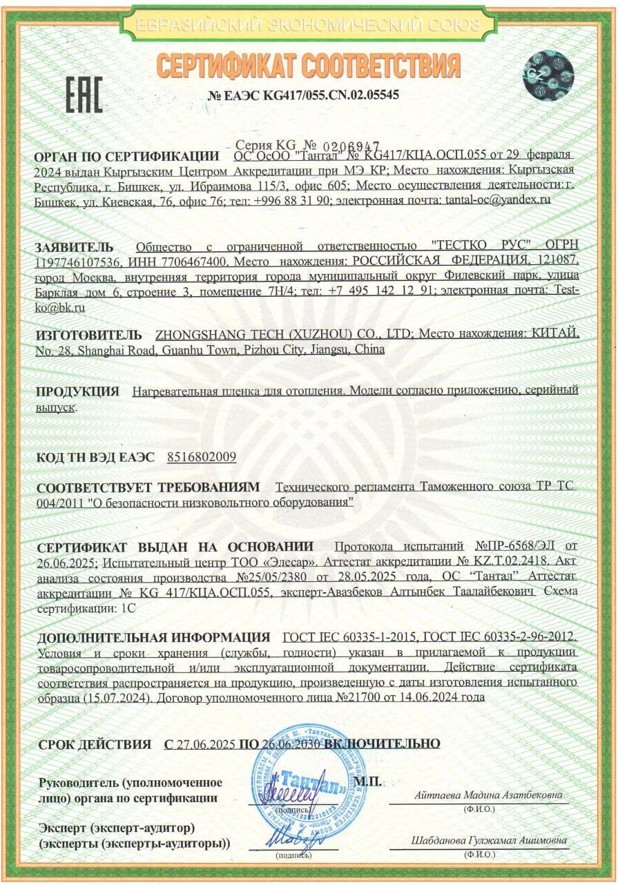 启迪之星投资企业、启迪·∞计划企业——中熵科技旗下核心产品新型半导体电热膜及远红外取暖器已通过欧亚经济联盟(Eurasian Economic Union, EEU)的强制性产品认证(EAC COC认证),这张通往俄罗斯、哈萨克斯坦等国的 "国际通行证",不仅是对产品安全与能效的权威认可,更标志着中国自主制热技术在全球舞台的崛起。