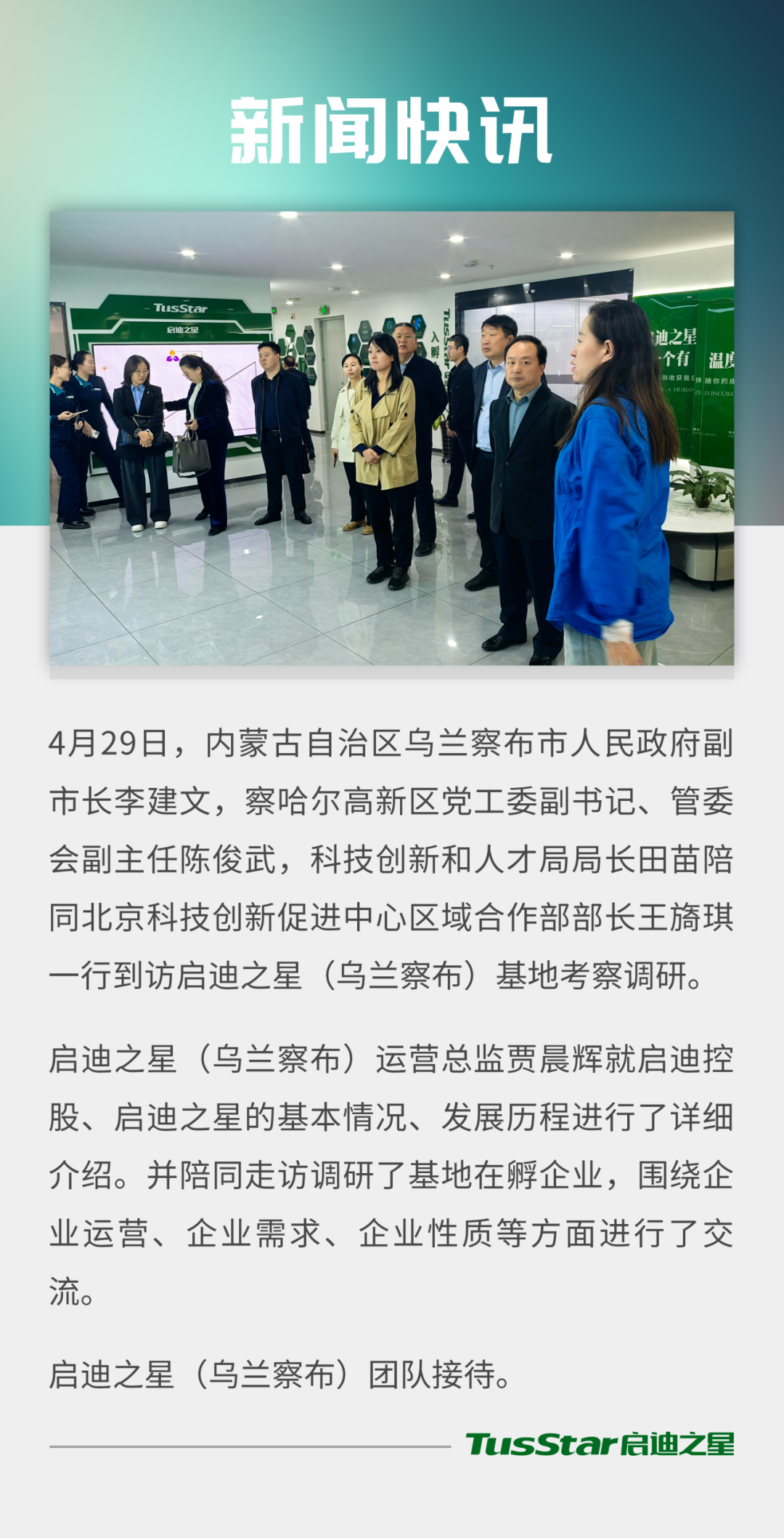 乌兰察布市副市长李建文一行到访启迪之星(乌兰察布)考察调研
