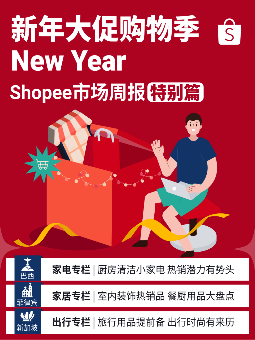 元旦是全球多数国家迎接2023新年的节庆日,Shopee的多个跨境市场也不例外,大家都在迎接新年大促的到来,这也意味着新的商机即将来临。