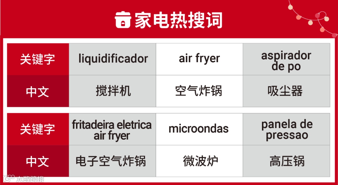 根据Shopee报告显示,巴西市场多个家电商品关键词于近期登上热搜词飙升榜,同样加点也是销售额较高的品类之一。