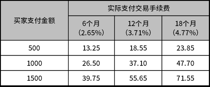 买家在下单时所选择的分期付款期限不同,卖家支付的交易手续费率也会相应地发生变化。