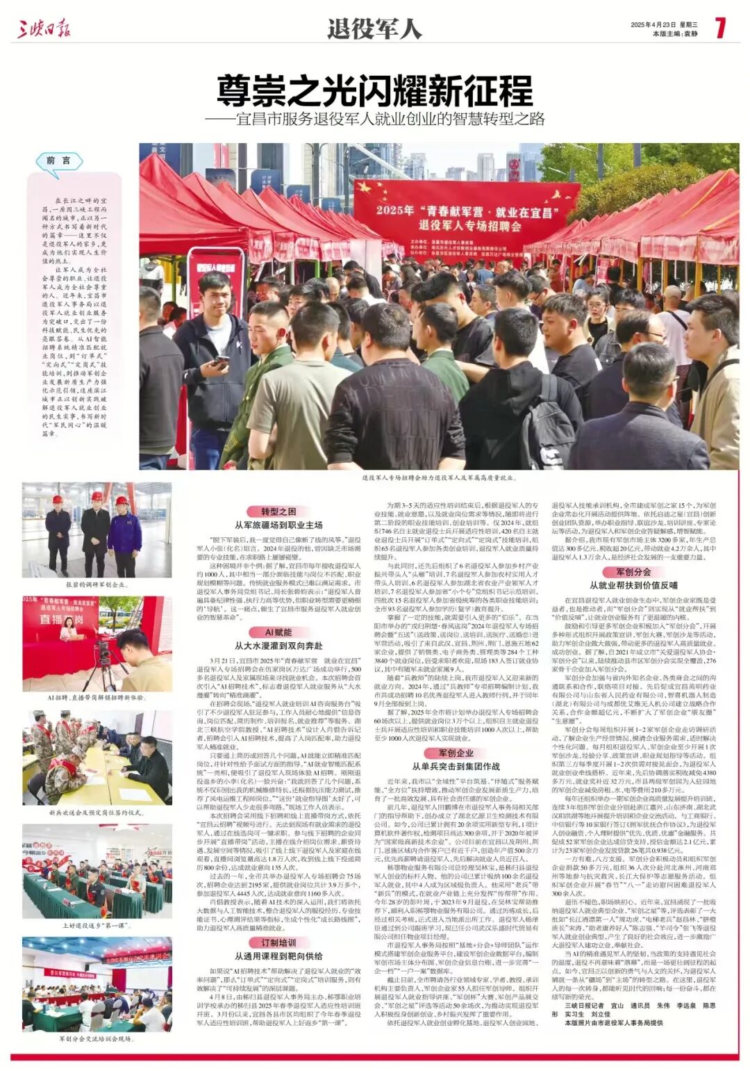 编注:近日,《三峡日报》以“尊崇之光闪耀新征程——宜昌市服务退役军人就业创业的智慧转型之路”为题,报道了宜昌市退役军人事务局在推动退役军人就业创业方面的创新举措与显著成效。