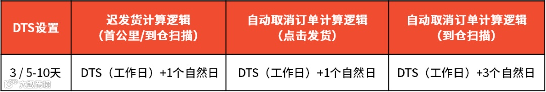 2022年12月28日生成的巴西站点的订单,DTS设为3天,2023年01月04日前被首公里成功扫描或到仓扫描即可。