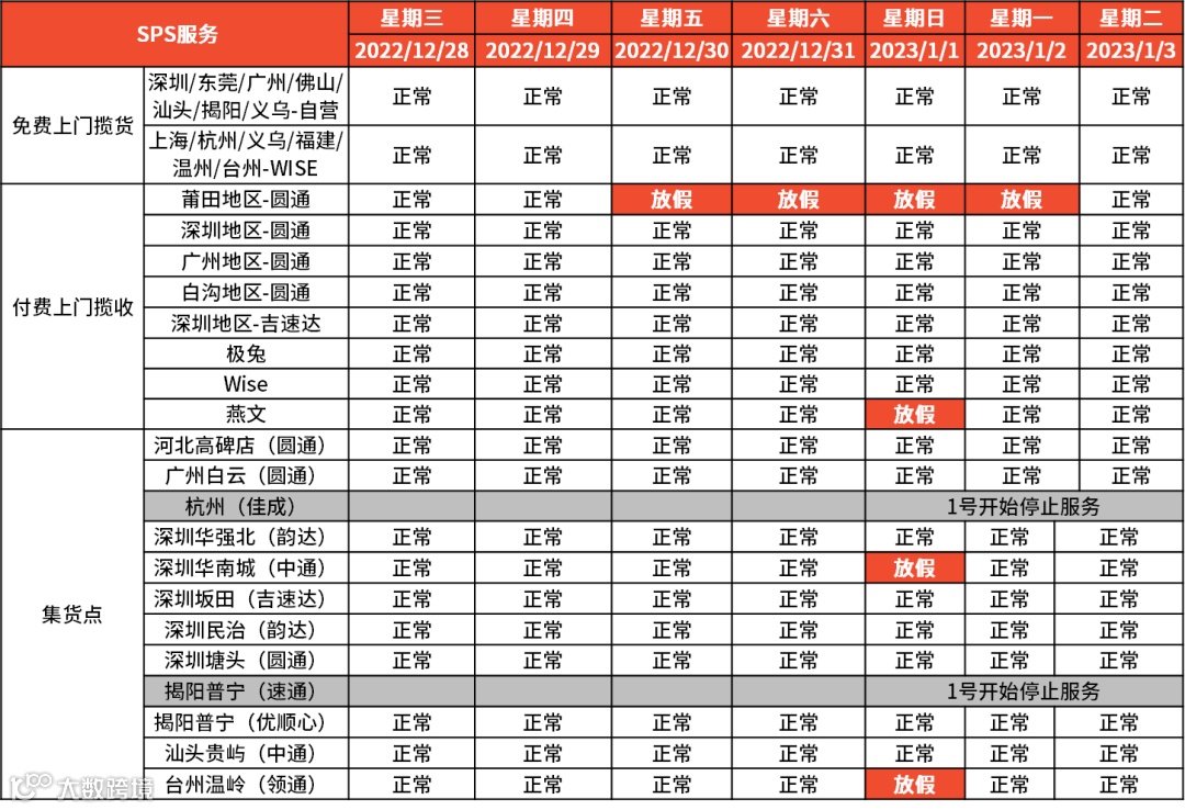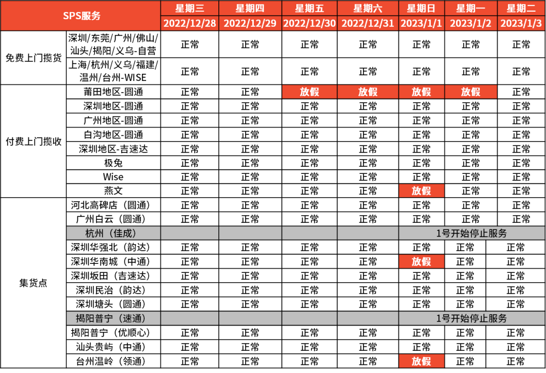 ②免费揽货服务 & 集货点服务 & 付费揽收服务元旦放假安排如下: