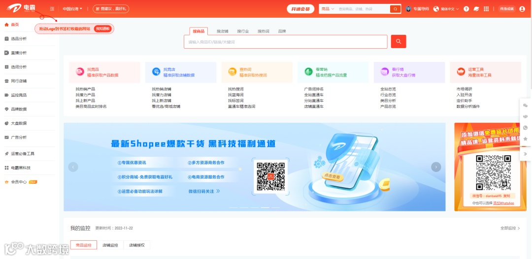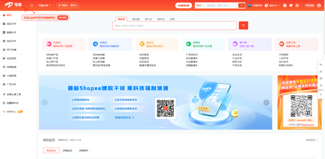 1.用电霸数据分析软件的选品功能结合Shopee市场周报进行选品;