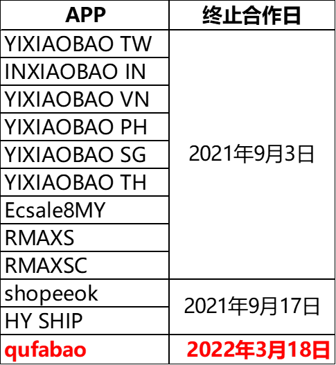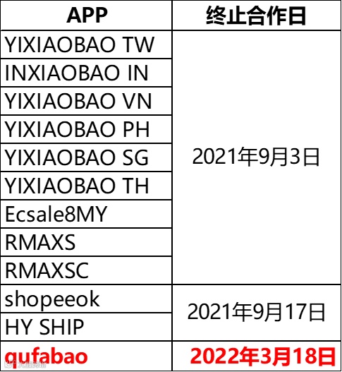 Shopee平台致力于打造良好的环境以提升客户体验。近期发现有第三方合作平台虚假宣称/宣传为跨境卖家提供本地发货渠道的违规行为,导致卖家产生较高的订单不履行率。为了给客户提供流畅的购物和销售体验,Shopee平台决定终止与以下第三方平台合作。