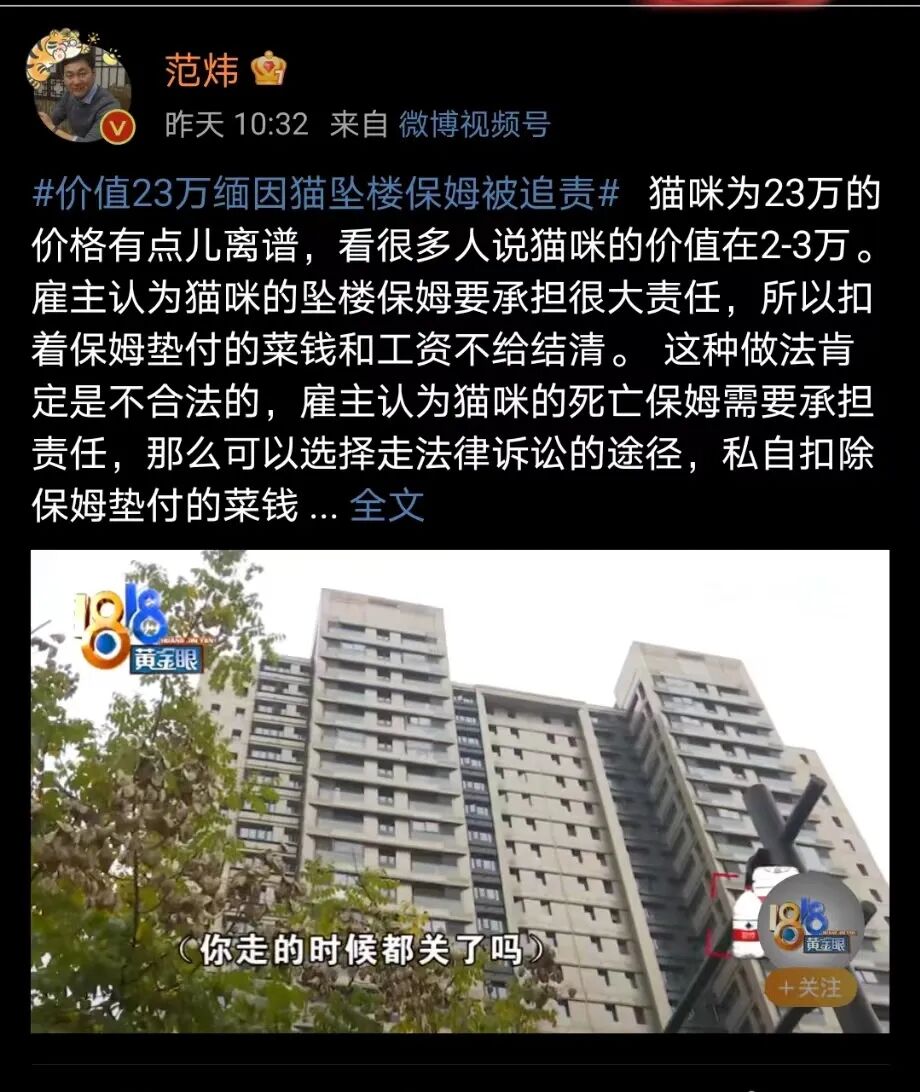 1.雇主表示猫咪是因为保姆没关窗户造成的,保姆则称是雇主不让关窗户;