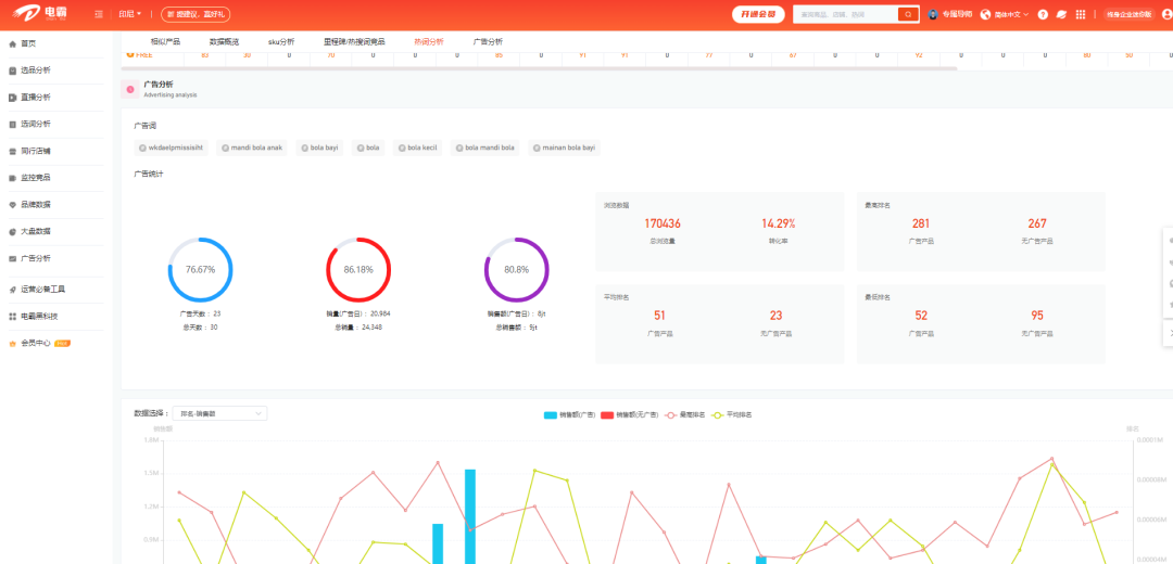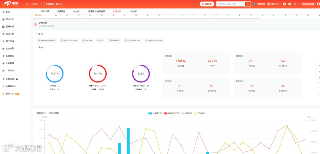 电霸数据分析软件不仅能帮助商家选品、运营,还能帮助商家“对症下药”做关键词广告,不浪费一分直通车费用。