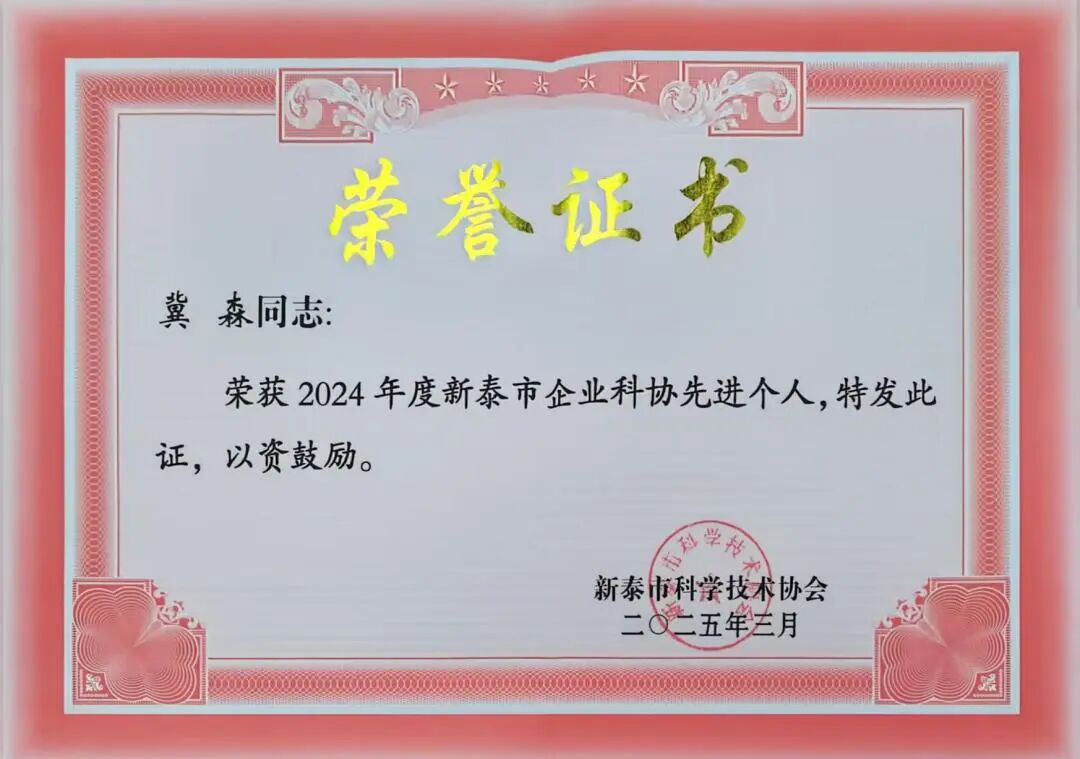 3月21日,新泰市科学技术协会印发《关于表彰2024年度新泰市基层学会先进单位和个人的通知》,其中,新泰启迪之星科技企业孵化器有限公司科协荣获“2024年度新泰市企业科协先进单位”表彰,新泰启迪之星科技企业孵化器有限公司运营总监冀森荣获“2024年度新泰市企业科协先进个人”表彰。