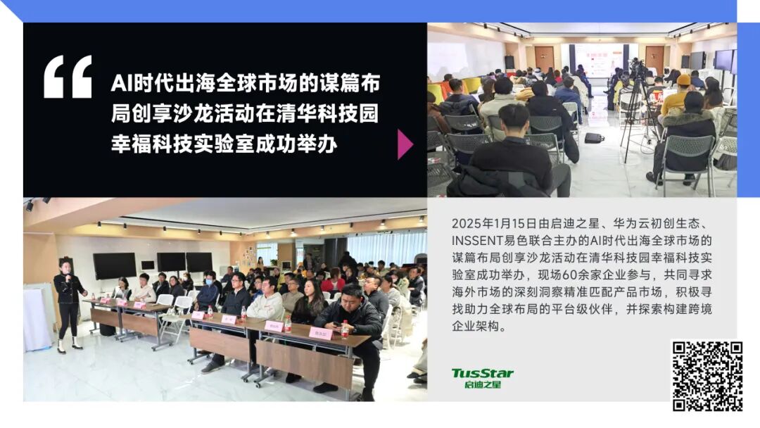 由华为云、易参和启迪之星联合主办的“创享沙龙:AI时代出海全球市场的谋篇布局”活动在清华科技园成功举办。活动邀请了人工智能领域的行业领袖、投资人代表,以及50余家优秀的初创企业,共同探讨人工智能企业出海的全球谋略。