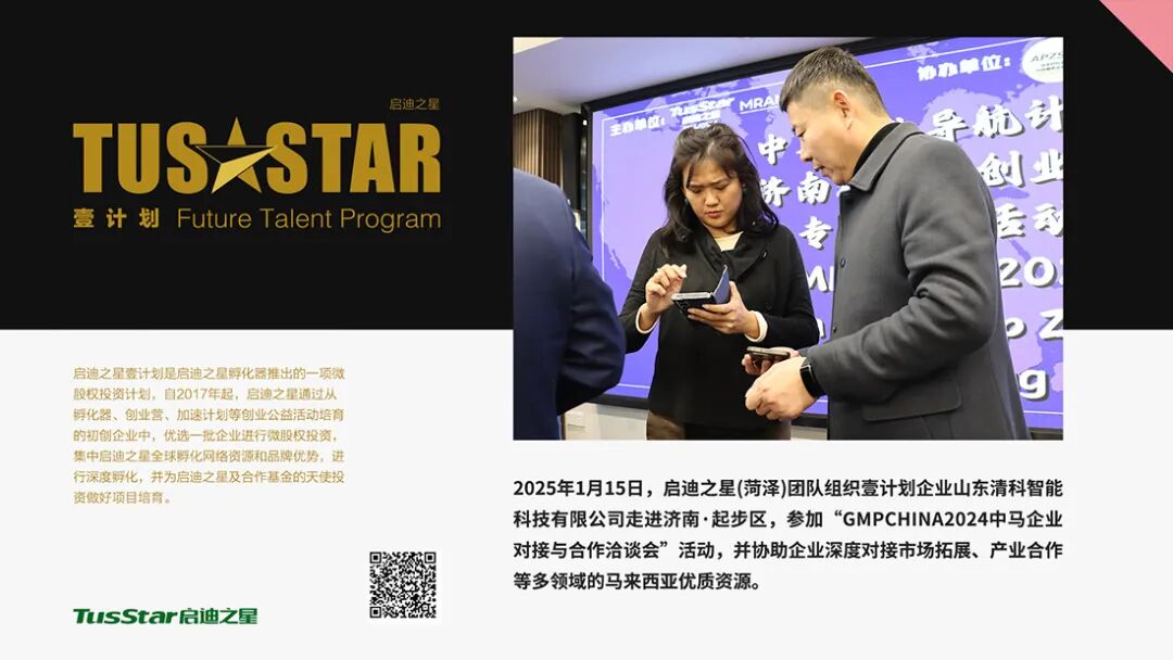 启迪之星 (菏泽) 组织壹计划企业山东清科智能科技有限公司走进济南起步区,参加“GMP CHINA 2024 中马企业接与合作洽谈会” 活动,协助企业深度对接市场拓展、产业合作等多领域的马来西亚优质资源。