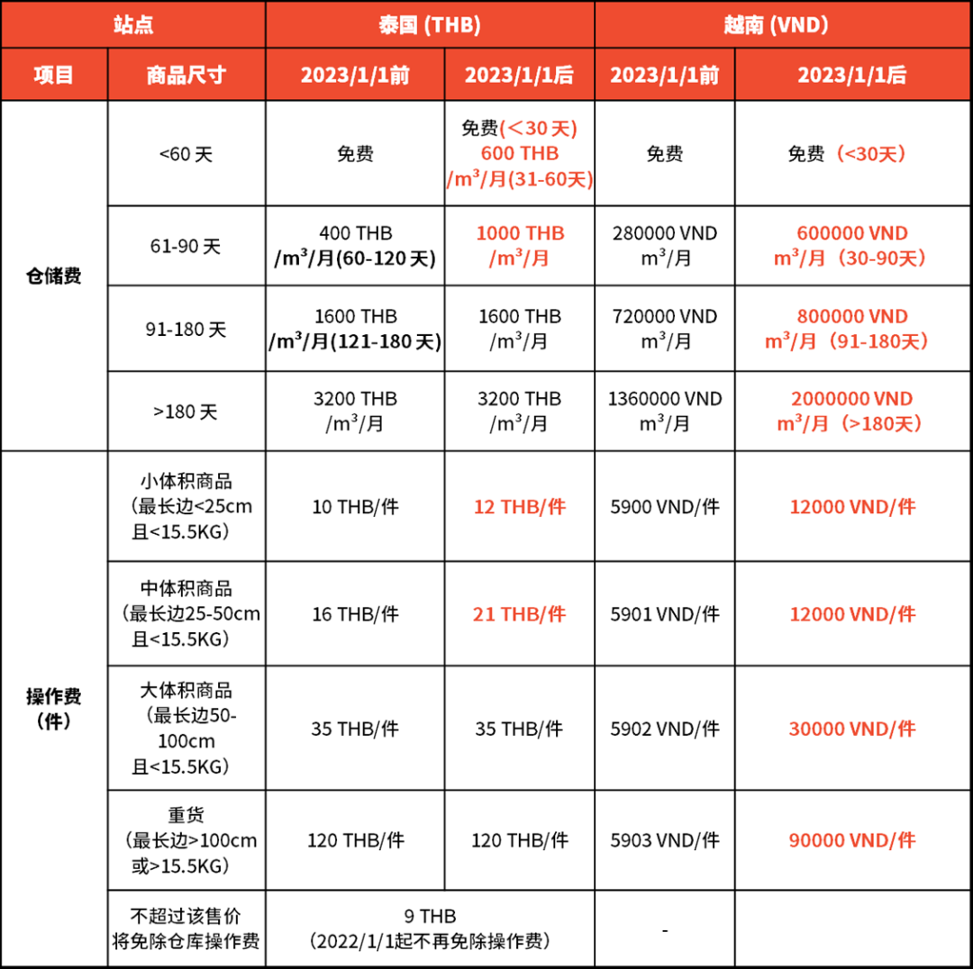 【重要通知】 泰国、越南海外仓服务费率调整通知