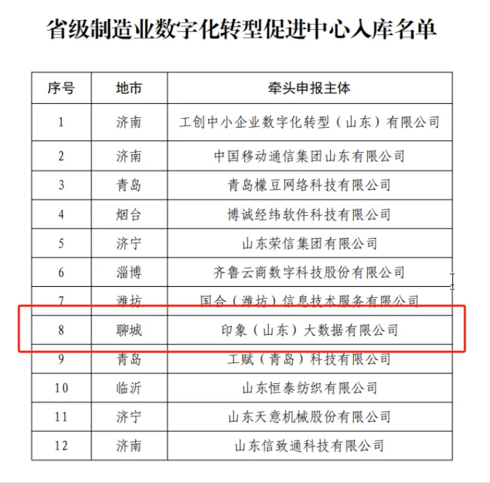 启迪之星(聊城)入孵企业印象(山东)大数据有限公司牵头申报的省级制造业数字化转型促进中心成功获批
