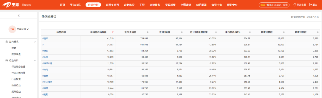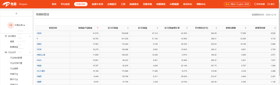 ------ 最强大的Shopee数据分析软件 ------