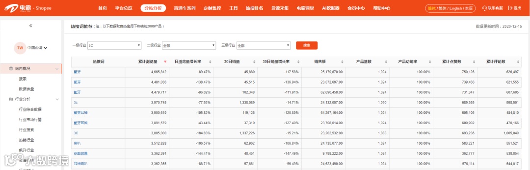 (注意:以上数据均来自电霸shopee)