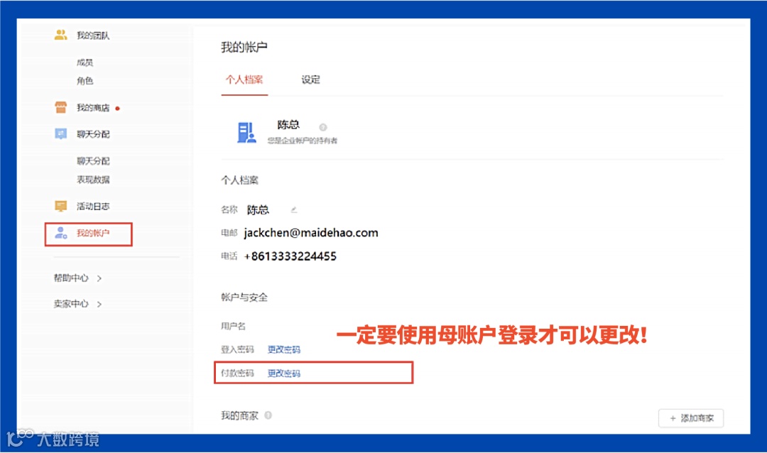 卖家可通过子母账户平台设置钱包密码。此钱包密码适用于所有已绑定母账户名下的店铺,每个店铺无需再单独设置。卖家需注意仅母账户拥有更改钱包密码的权限。