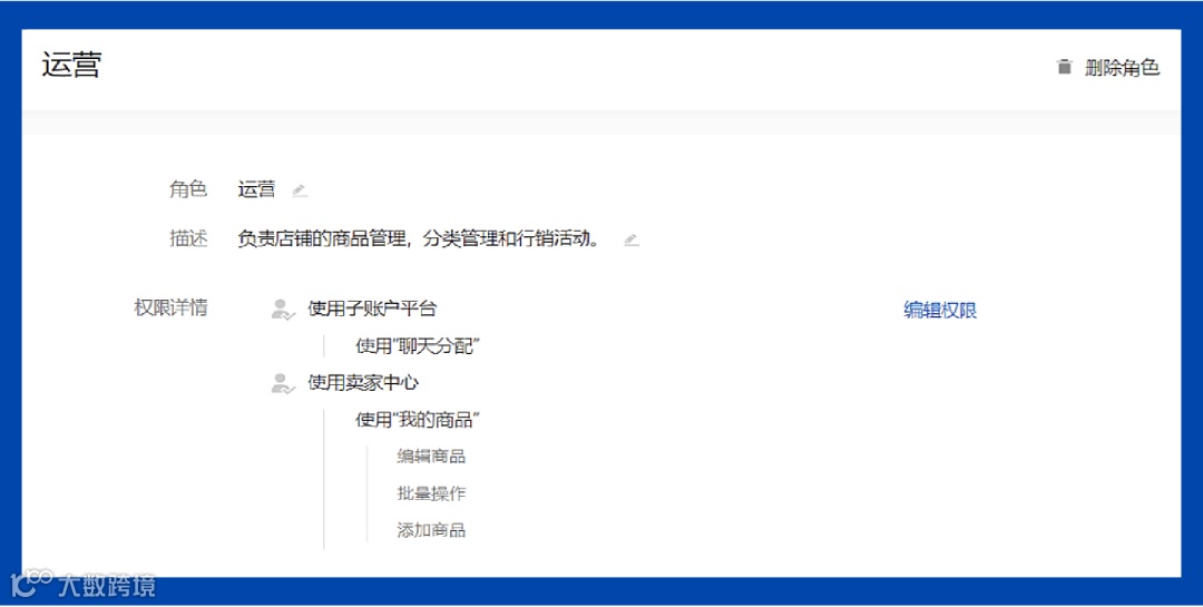 例如,陈总有一家公司叫“卖得好”,该公司在东南亚市场均开设Shopee店铺。陈总手下有4名员工:财务、运营、英语客服和泰语客服,其中财务需进入所有店铺查看收入、商品和订单,运营需管理所有店铺商品和行销活动,客服需查看所有店铺订单和商品,且泰语客服对接泰国站点店铺,英语客服对接英文站点店铺。通过子母账户平台,陈总便能对不同员工设置不同权限,并分配员工给对应的店铺。例如陈总可创建一个角色为“运营”,并勾选对应权限如编辑商品、批量操作,并将该角色分配给对应的运营人员,让其能够轻松管理店铺商品。