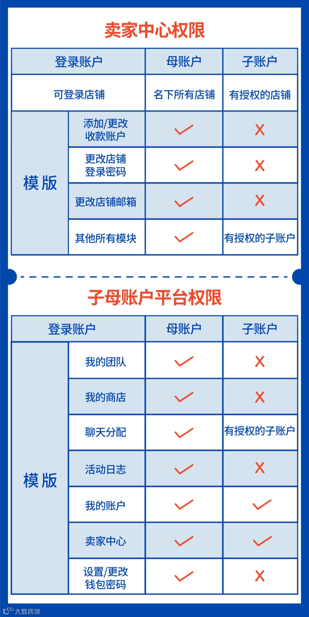 🌟子账户:又名“成员”,由母账户创建,账户拥有者通常是公司员工(运营人员、客服等),登录名和账户权限均由母账户设置。