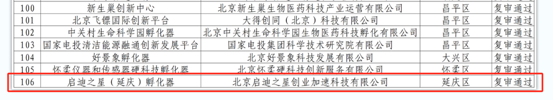 启迪之星(延庆)通过“北京市科技企业孵化器”复评认定