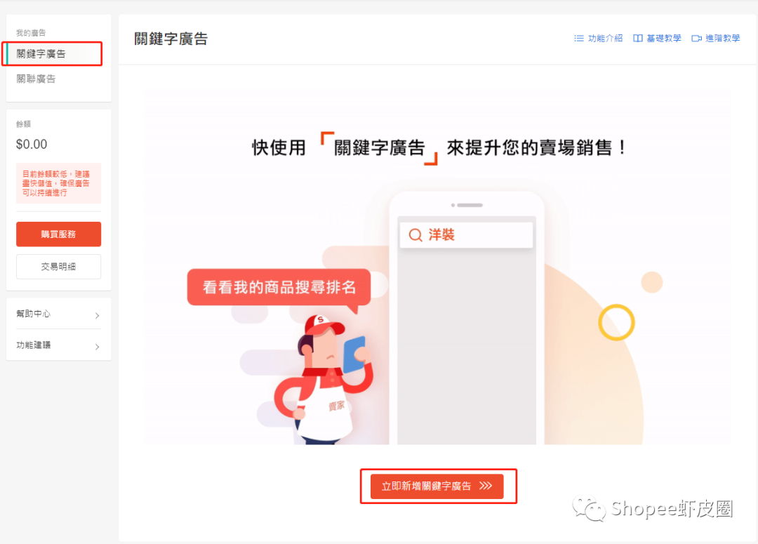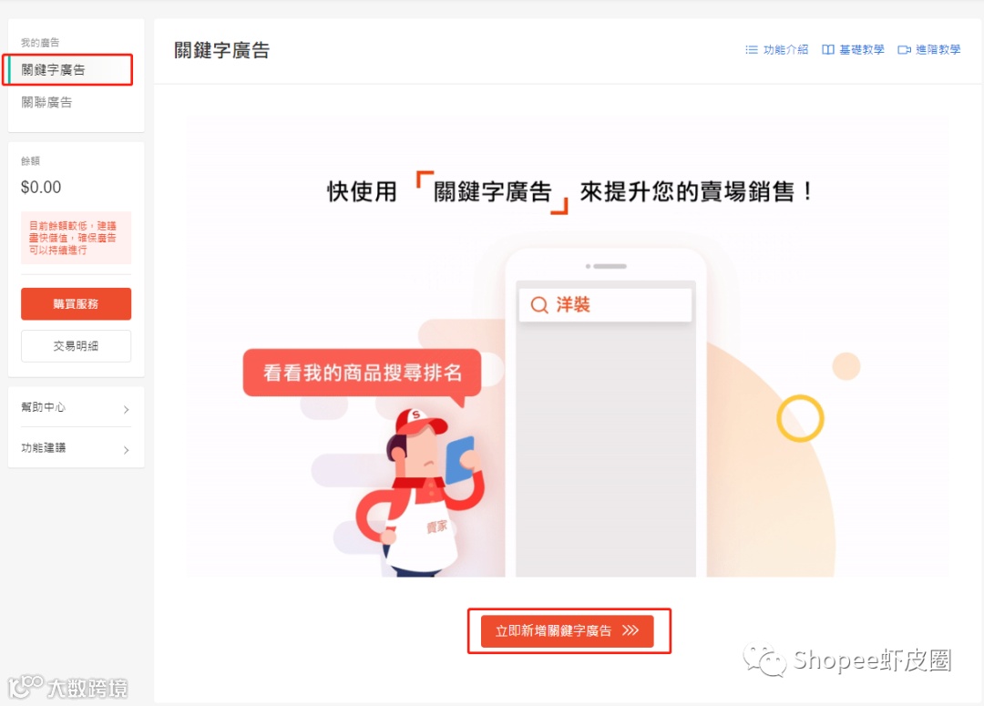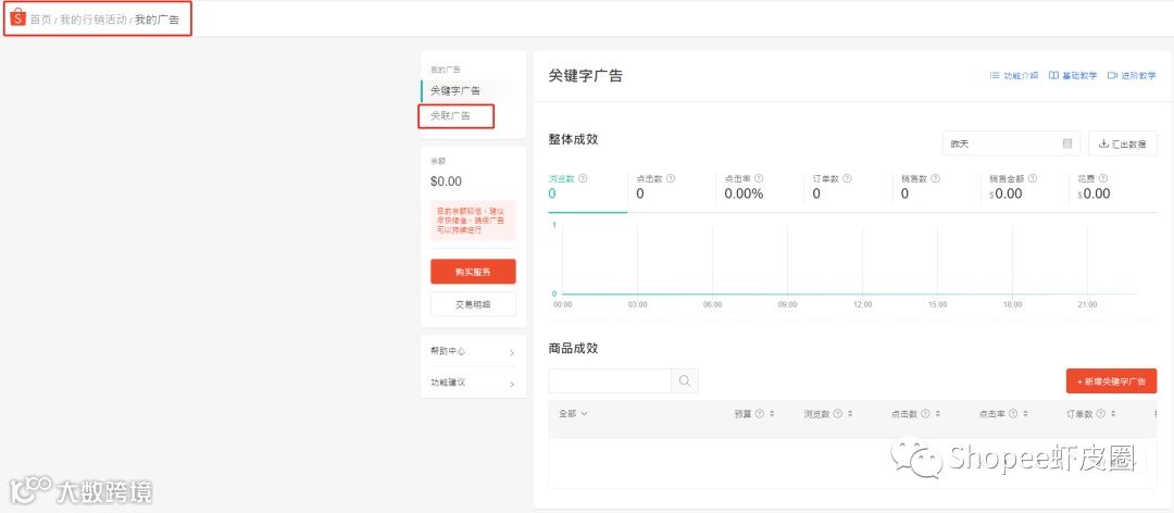 关键词广告是shopee提供的另一种为产品打广告的手段,与关联广告相比,关联词广告的费用稍高,回收效益也很不错。