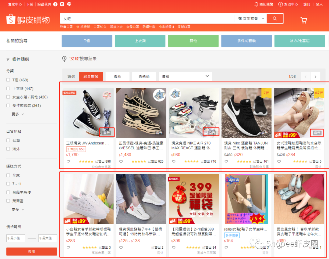 不论是线上还是线下开店,给商品和店铺打广告都是有效提升销量的手段,做shopee也不例外,在虾皮平台上总共有三种广告可供卖家选择,分别是关键词广告,关联广告和商店广告。