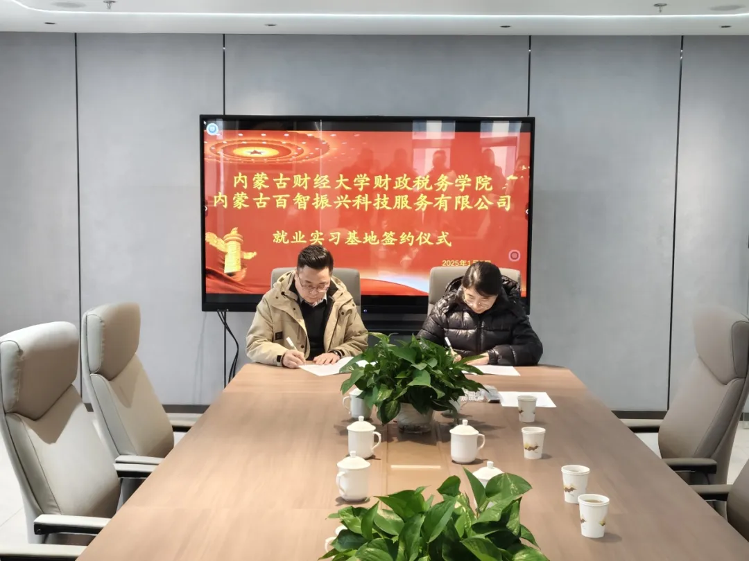 孵化企业百智振兴与内蒙古财经大学财政税务学院举行就业实习基地签约仪式