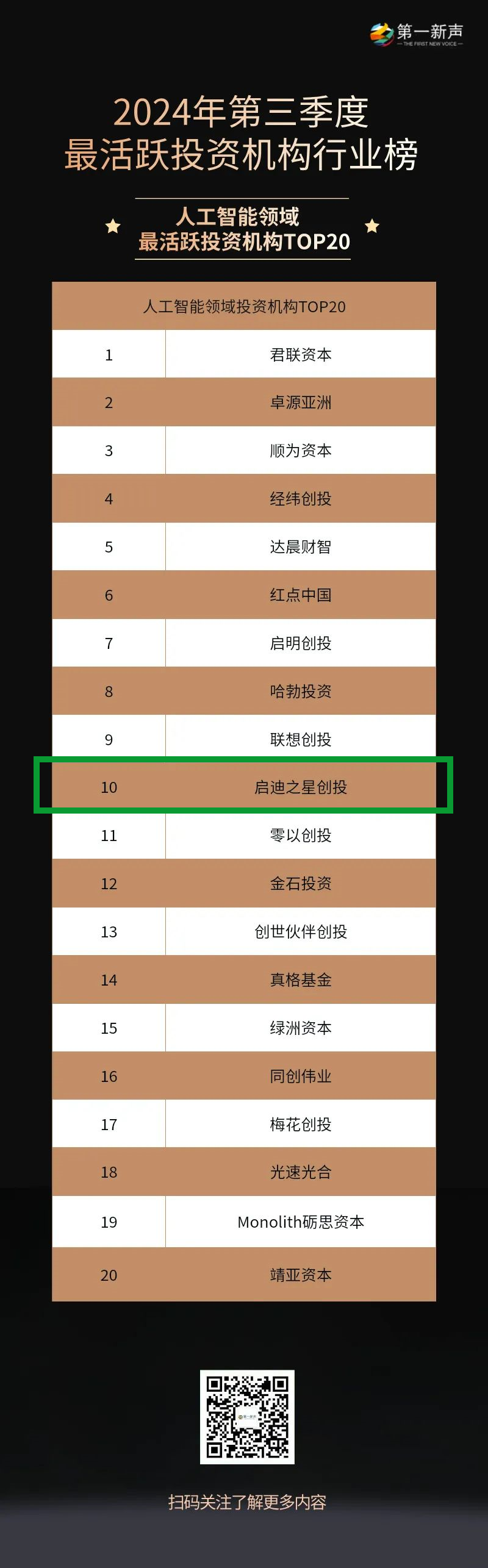 启迪之星创投入选“人工智能高质量投资机构排行榜”Top100