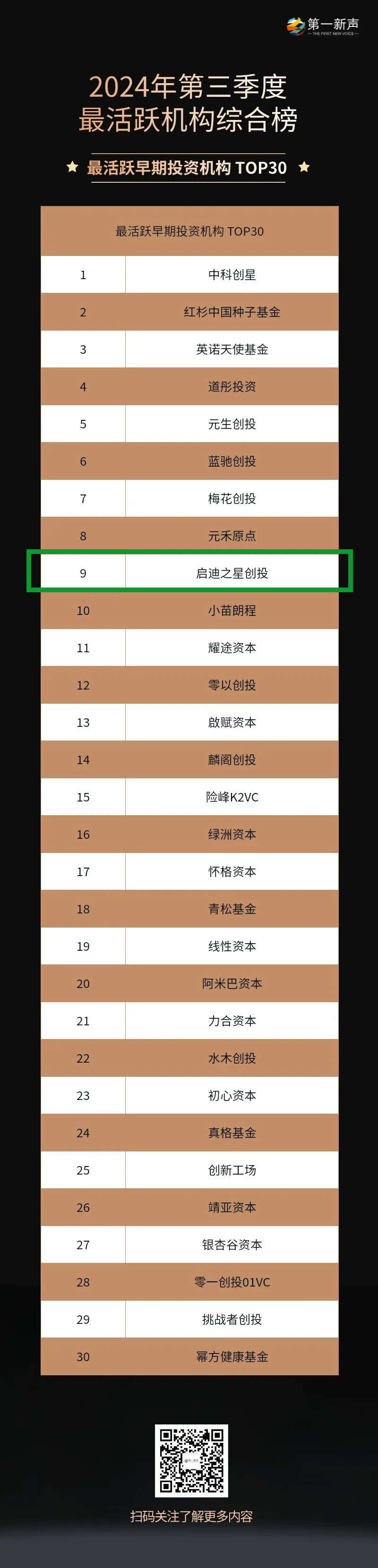 启迪之星创投入选“中国最佳早期投资机构综合榜、活跃榜”