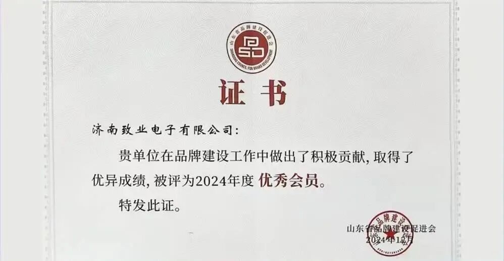 致业电子荣获山东品牌建设促进会2024年度“优秀会员单位”。