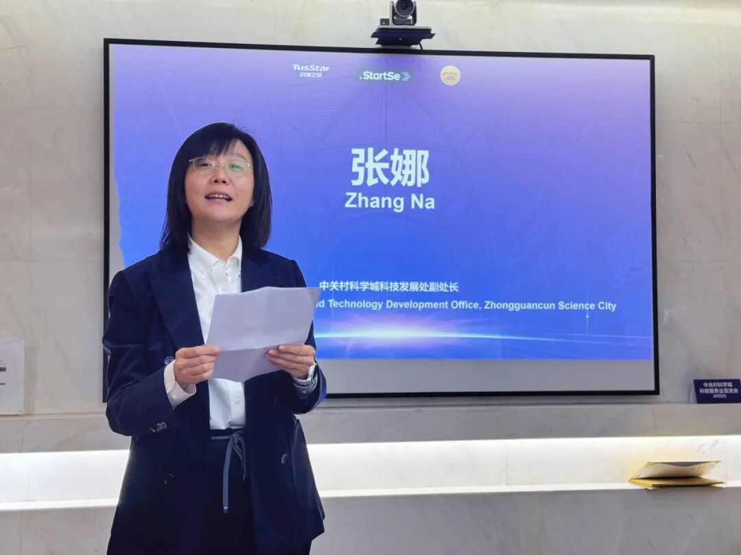 中关村科学城科技发展处副处长张娜在致辞中对巴西企业家的到来表示热烈欢迎。她阐述了海淀区的科教资源优势、高新技术企业的密集布局以及卓越的投资环境,并强调海淀正致力于打造国际教育平台,构建全球创新合作网络,持续营造和提升开放、包容的国际化环境。她期待此次签约能为后续的交流与合作奠定坚实的基础。