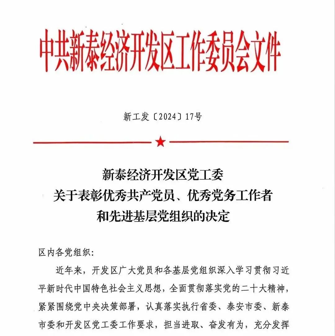 启迪之星(新泰)党支部雷国栋、郭旭获新泰经济开发区党工委表彰