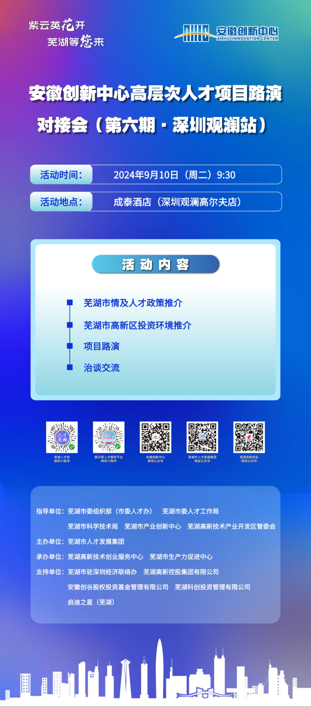 安徽创新中心高层次人才项目路演对接会(第六期・深圳观澜站)
