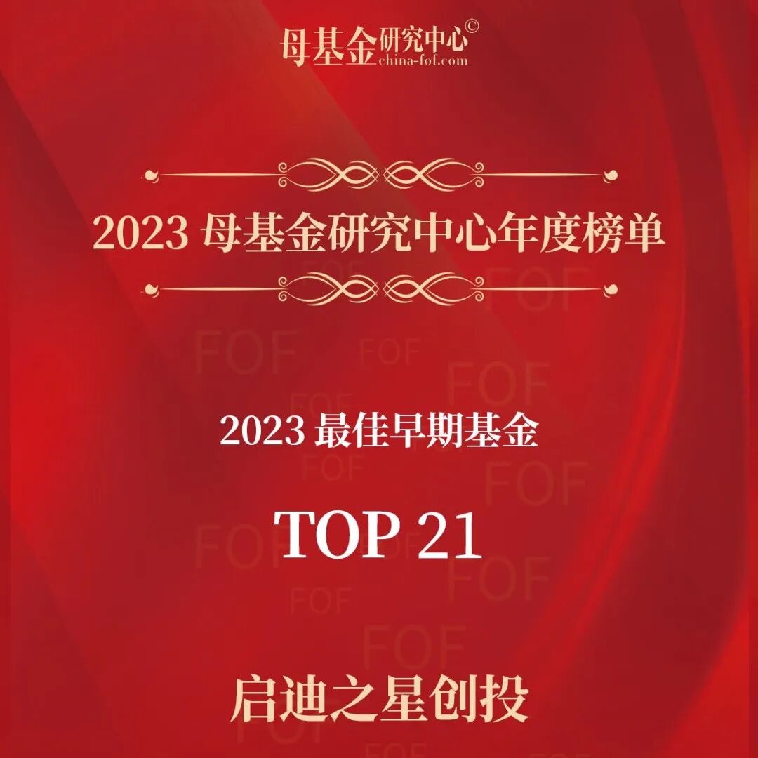 启迪之星创投荣获“2023最佳早期基金TOP30”