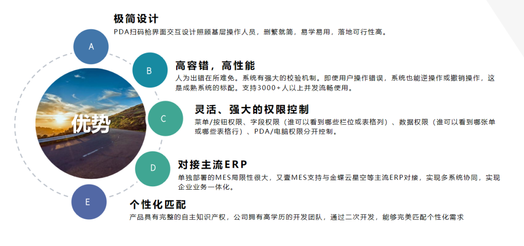 2.生产有效整合:智慧仓储及生产系统(WMMES)可以真正将设备、仓储和生产设施进行有效整合,打通信息流,从智能仓储:利用条码承载物料等信息、系统自动更新库存、周转数据,到计划/工艺管理:生产车间可视工艺管理,精准计划排程;到制造信息采集:防错防呆、自动采集、实时采集、异常预警、追溯管理;再到制造数据集成:产品全生命周期质量追溯。