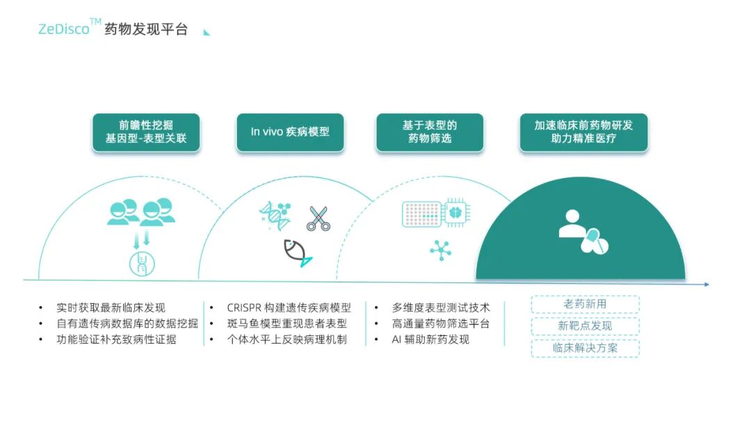 赛福基因累积的近20万例遗传病基因组学大样本数据,为临床诊断和科学研究提供了宝贵的资源。通过独具特色的基因大数据挖掘和功能验证平台,以及高通量药物筛选平台,为探索遗传病分子病因和药物靶向,和研发精准治疗药物提供有力支撑,形成诊疗闭环。满足患者精准诊断需求的同时,从科研角度帮助临床医师找到新的遗传病致病机制,助力其发表更好的学术成果。赛福基因自主研发的ZeDiscoTM药物发现平台,深度挖掘基因大数据转化价值,聚焦全新致病基因靶点进行药物筛选,为遗传病first in class药物研发提供高效通路,目前,公司已建立数十个模型,这些成果为公司实现诊疗一体化战略布局打下了坚实的基础。