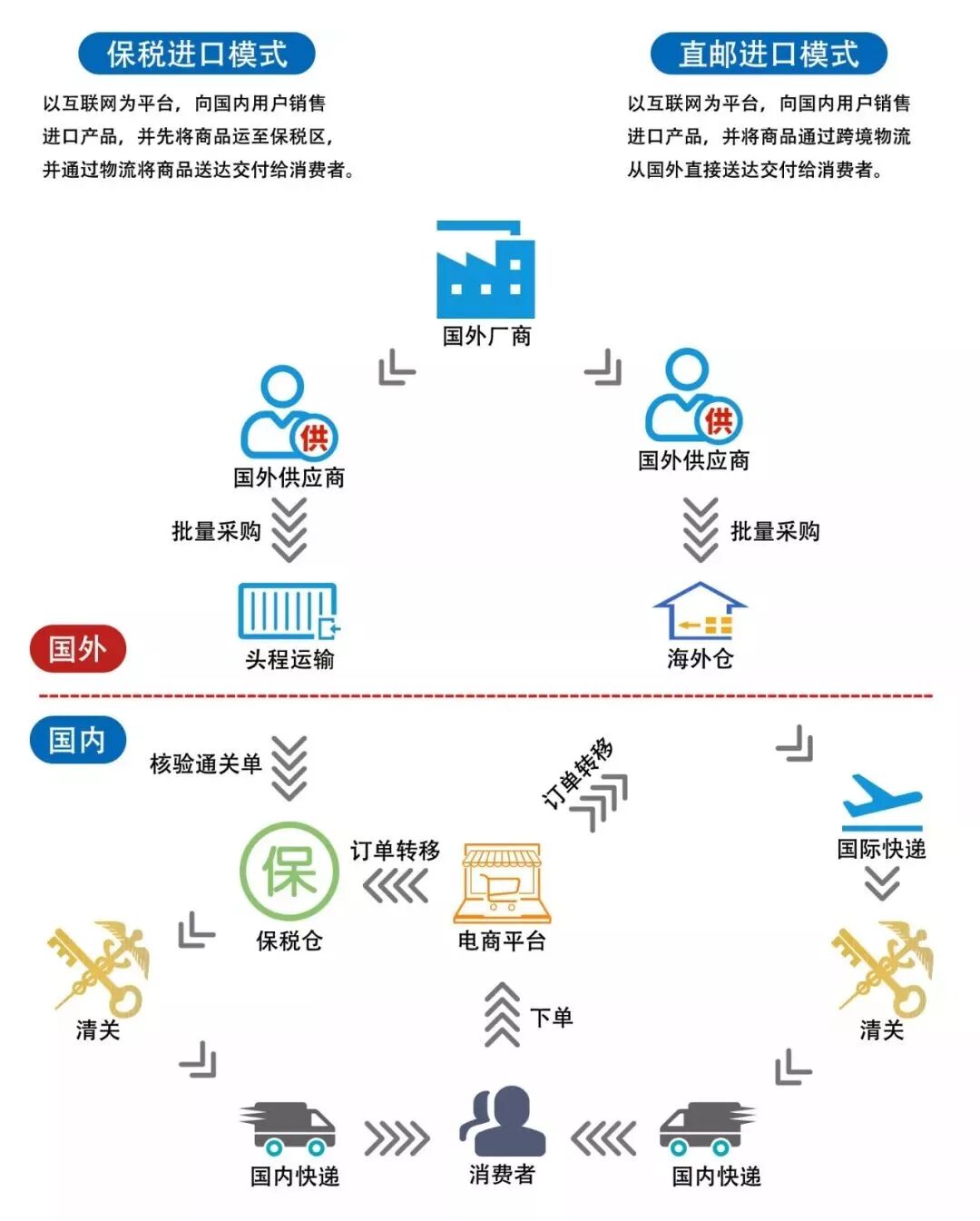本文简称“保税进口模式”跨境电商进口企业通过集中采购,先将商品批量运输至国内保税仓,待消费者下单后,再从保税仓进行清关出区,交付国内物流配送至消费者。