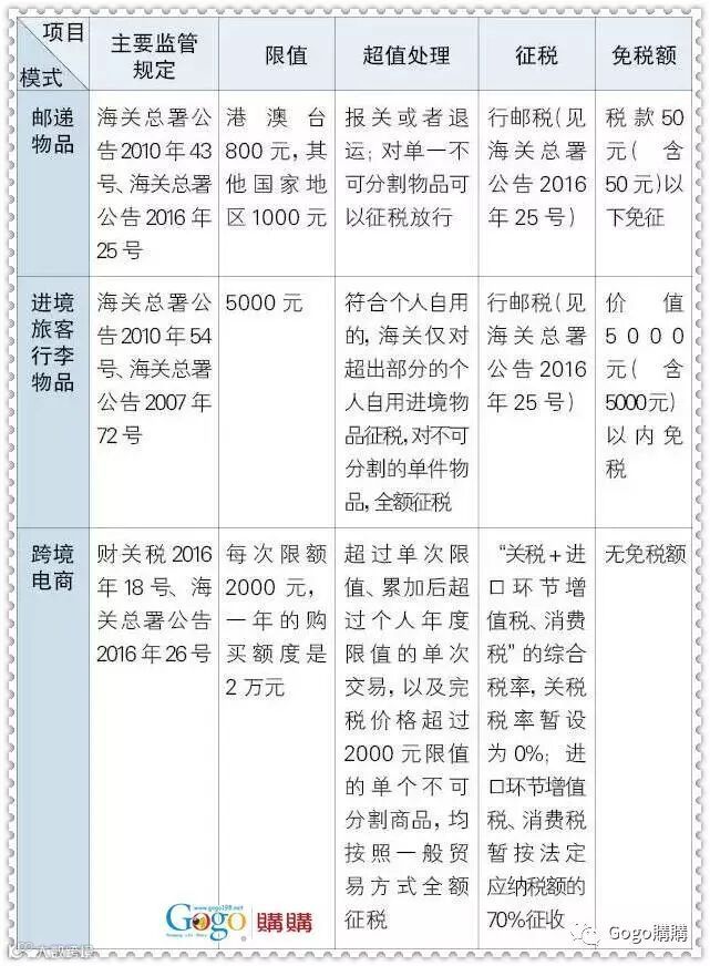 三种方式的限值是不一样的,超出限值的基本就需要按照货物方式办理通关手续了。
