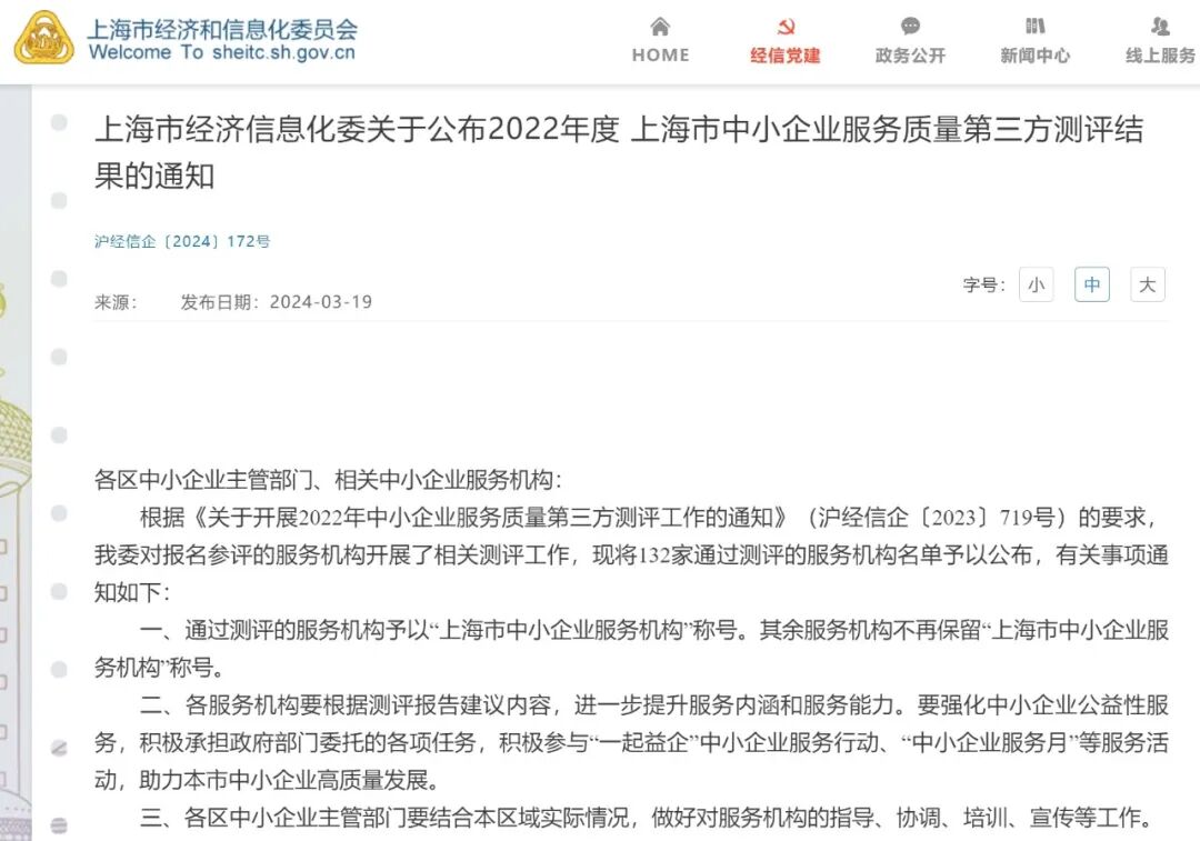 近日,上海市经济和信息化委员会公布了关于2022年上海市中小企业服务质量第三方测评结果,共计132家服务机构通过了测评,启迪之星(上海)获评“优秀”。