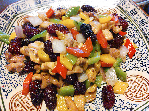 店家的桑果炒鸡丁亦非常受食客欢迎,自家种植的桑果酸酸甜甜,搭配上香煎过的鸡丁,一起翻炒。虽然制法简单,却往往一上桌就被大家一扫而空!桑果的酸甜,搭配鸡丁的滑嫩和香口,不仅清新不油腻,更是让人胃口大开,为后面的菜色大腾空间!