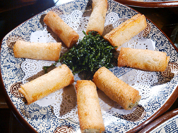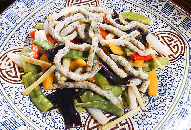 庄园当中种植着大片的桑树,优质的食材使得食客们食指大动。而当中,最受欢迎的便是一道碧玉炒桑叶鱼线。选用园内自己养的土鲮鱼,先起鱼肉然后刮青代替剁碎,一斤鱼往往只能刮出三两。但是这样刮出来的鱼青非常爽口弹牙,又爽滑。加上切碎得像芝麻大小的桑叶再挤出鱼线。煎香后再炒,这样这道菜的口感就是又香又爽又滑又清新,又有鱼的香甜,又带着桑叶的清香,十足满足吃货们的所有要求!