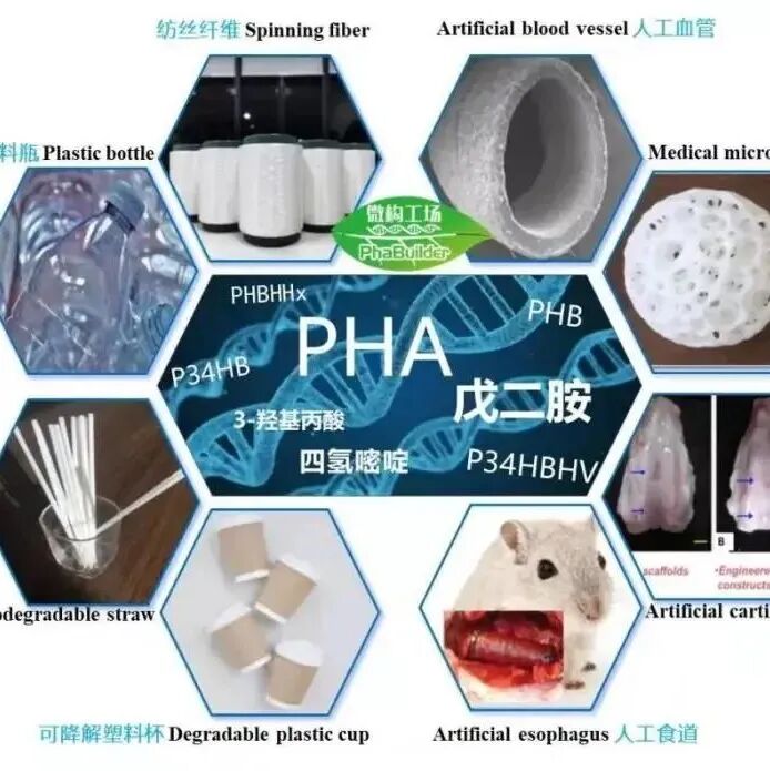 PHA是一类作为碳和能量储存积累的天然细胞内生物聚酯,基于PHA优异且可控的生物可降解性、固有的生物相容性、多样的机械性能和热加工性,PHA在可生物降解的包装材料、组织工程材料、缓释材料、电学材料以及医疗材料方面有广阔的应用前景,如可用于医用微球、医用缓释载体、人体植入材料、抗菌纤维和饲料等。