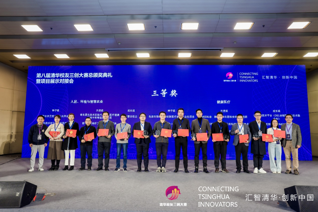 第八届清华校友三创大赛在全球设置了八大赛道及种子、天使及成长三大组别。历时7个月的赛事辐射全国19个城市,经过层层遴选,最终各赛道的一、二、三等奖在颁奖典礼上揭晓并领奖。