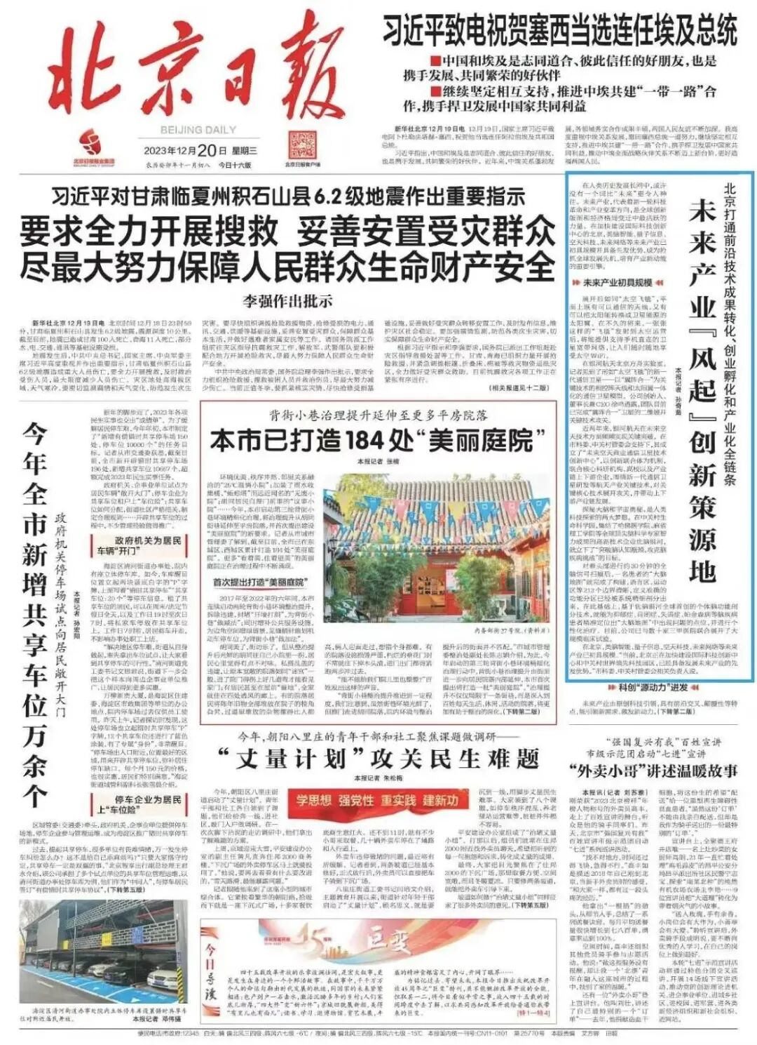 编注:12月20日,北京日报头版以“未来产业‘风起’创新策源地”为题,报道在北京,类脑智能、量子信息、空天科技、未来网络等未来产业已初具规模并具备先发优势。