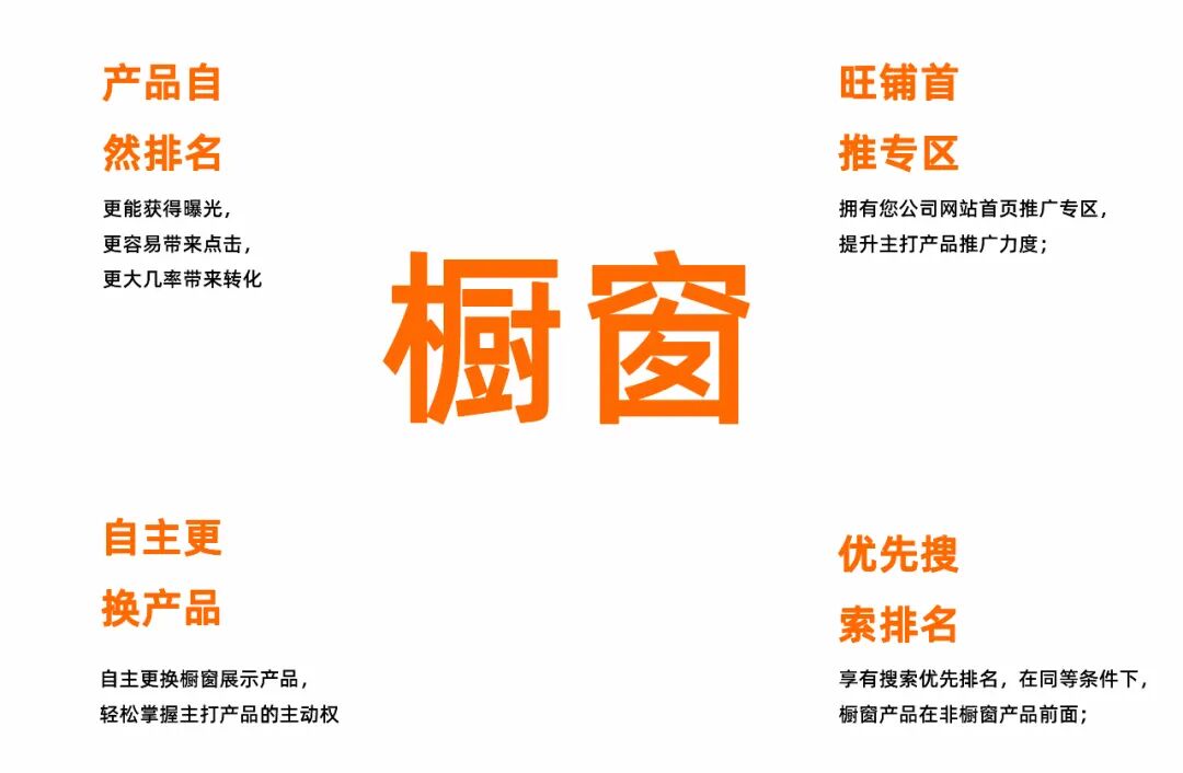 1、享有搜索优先排名,在同等条件下,橱窗产品在橱窗产品前面