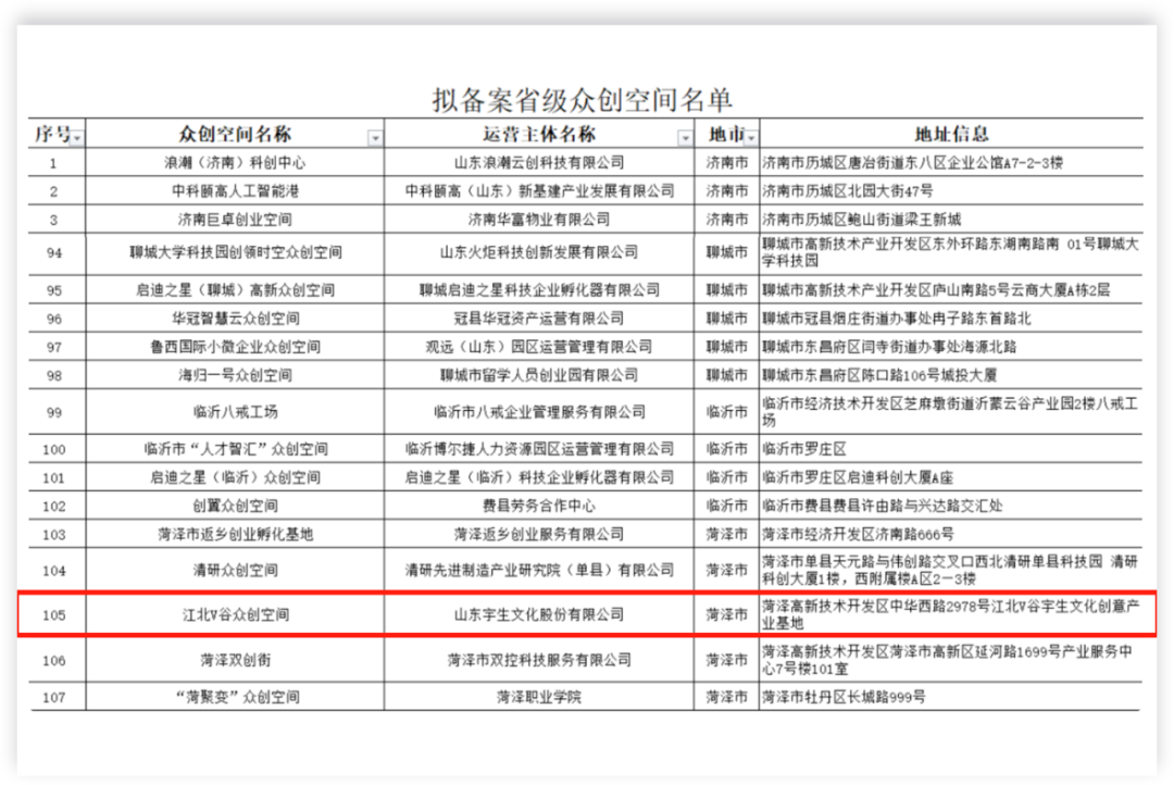 与此同时,壹计划企业宇生文化,与启迪之星临沂、济宁、聊城等基地一起通过省级资质认定,获评“省级众创空间”。作为一家专注于文化创新的企业,宇生文化承担省市级项目20余项,创造了丰富的文化价值。