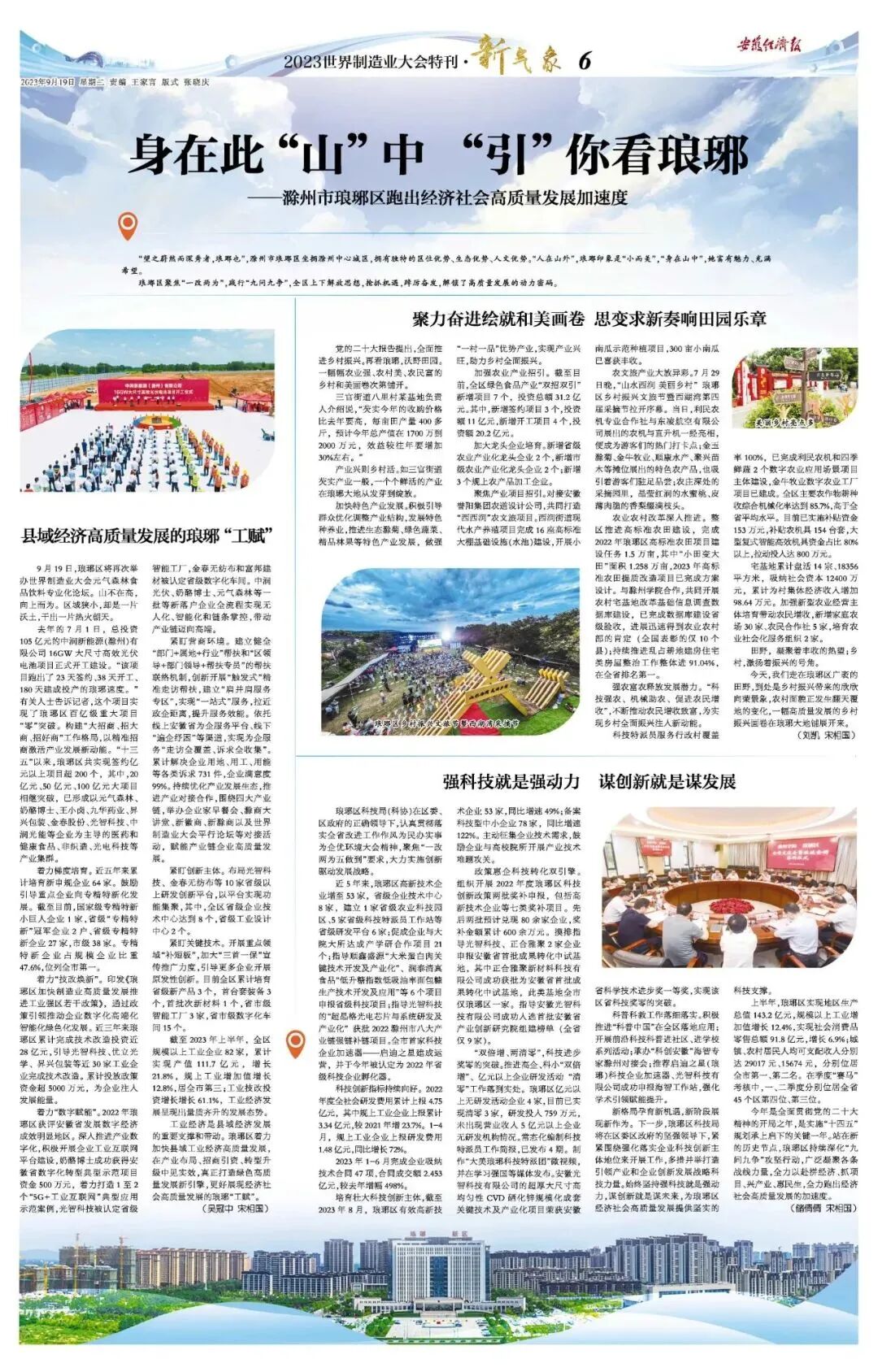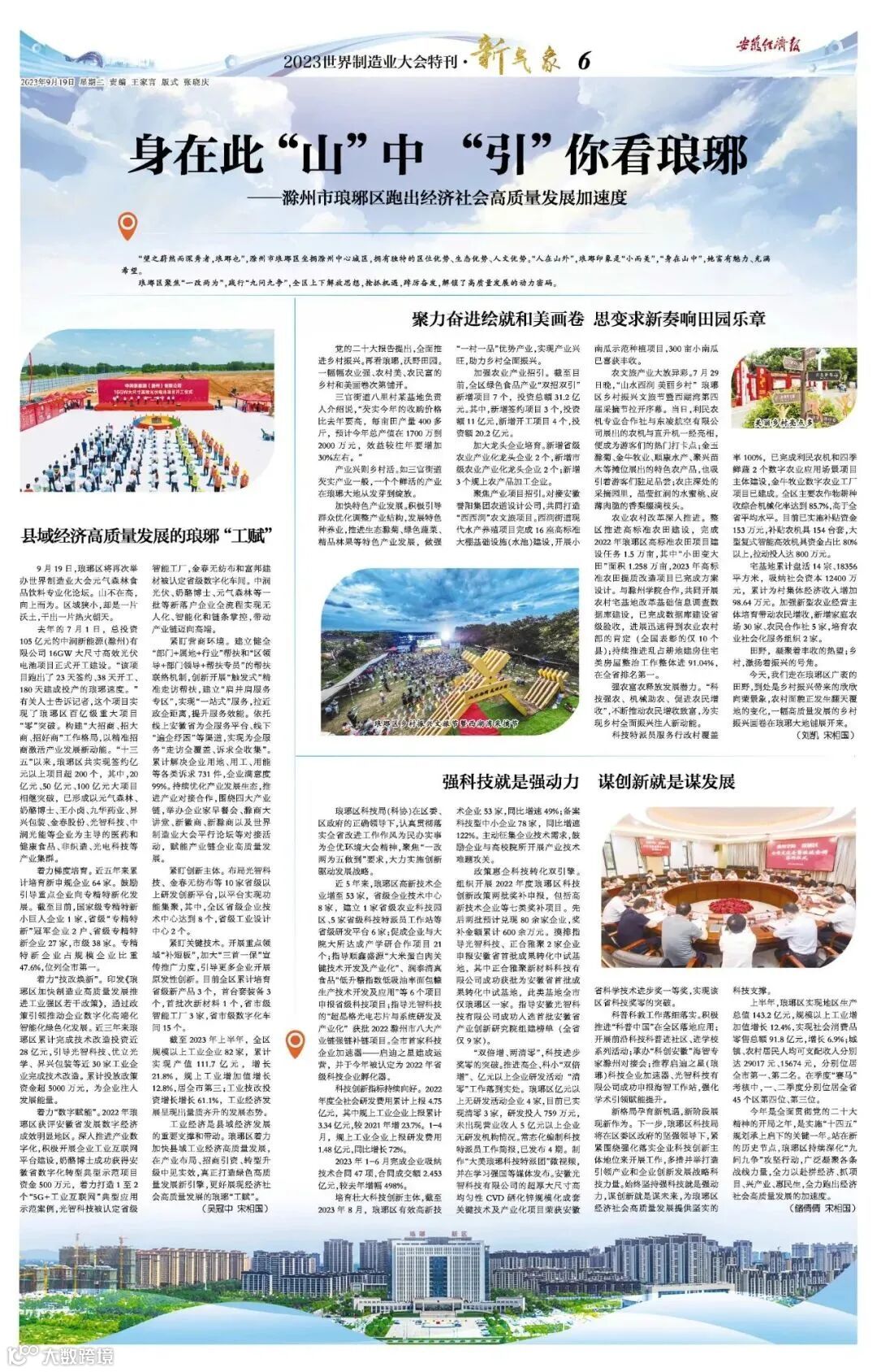 近日,《安徽经济报》2023世界制造业大会特刊·新气象刊发了《身在此“山”中 “引”你看琅琊——滁州市琅琊区跑出经济社会高质量发展的加速度》一文,文中提到启迪之星(琅琊)科技企业加速器所取得的主要成绩:全市首家科技企业加速器——启迪之星建成运营,并于今年被认定为 2022 年省级科技企业孵化器。加速器入孵企业安徽正合雅聚新材料科技有限公司成功获批为安徽省首批成果转化中试基地,全市仅琅琊区一家。此外,加速器成功申报海智工作站,强化学术引领赋能提升。